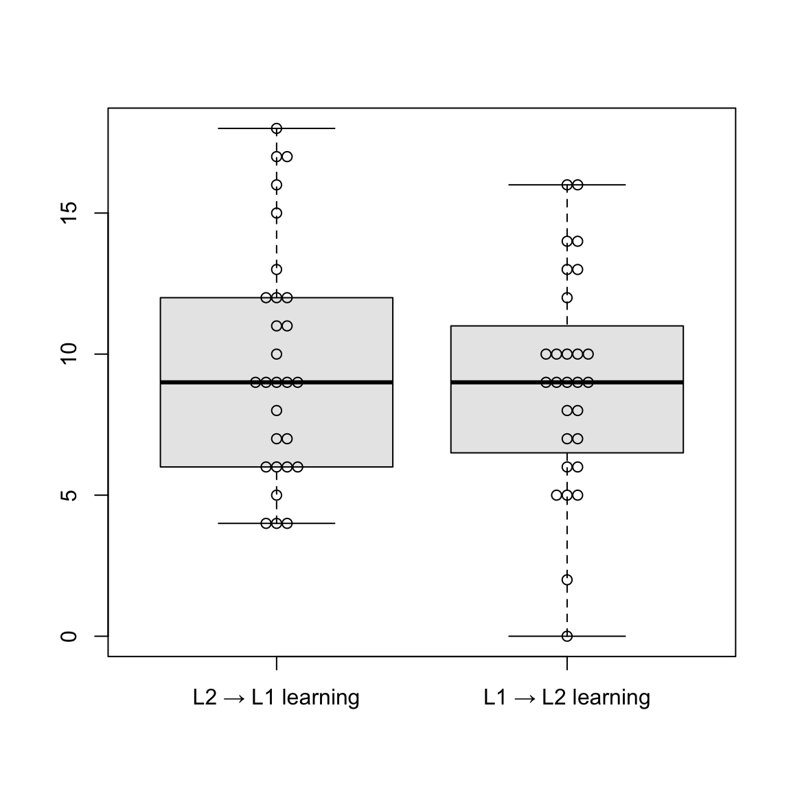 - There is no significant difference between the two learning directions.